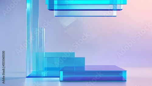 abstract, background, blue, glasses, geometric, shape, design, modern, minimalist, contemporary, architecture, structure, transparent, semitransparent, vibrant, colourful, pastel, light, shadow, glossy, polished, smooth, clean, simple, elegant, creative, artistic, innovative, technology, futuristic, digital, render, three-dimensional, illustration, image, artwork, style, gradient, hue, tone, colours, pattern, texture, space, form, composition