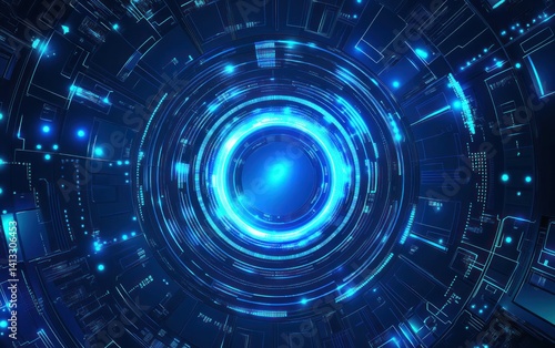 abstract, blue, glowing, circle, technology, futuristic, pattern, light, design, digital, background, energy, cyberspace, network, connection, datum, artificial intelligence, ai, innovation, science, communication, electric, virtual, tunnel, portal, system, neon, bright, circuit, matrix, web, cyberspace, science fiction, render, wallpaper