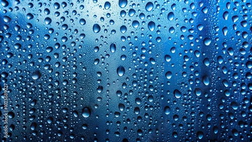 Abstract blue raindrop pattern on window