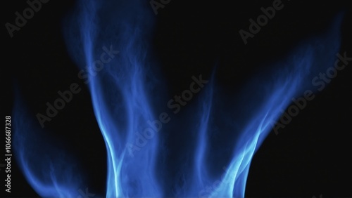 Abstract blue smoke swirls against black background