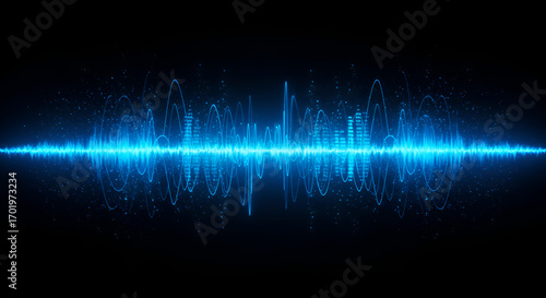 Abstract Blue Sound Wave Visualization on Black Background for Technology Concepts