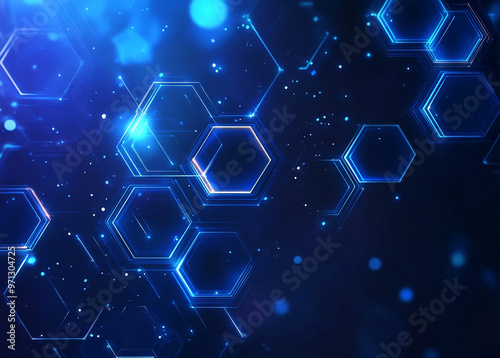 Abstract blue technological background with hexagons and light effects. Digital illustration of a futuristic design for web, mobile app, or presentation.