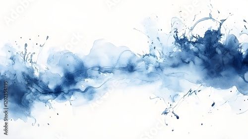 Abstract Blue Watercolor Ink Splashes and Blobs
