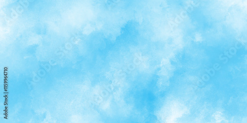Abstract blue watercolor painted sky background by teal color blue, Abstract blue color clouds background, Vibrant clear blue sky with puffy and blurry natural clear clouds.