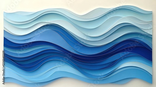 Abstract blue wave layered paper art.