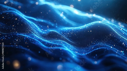 abstract, wave, blue, sparkle, digital, motion, energy, design, technology, background, futuristic, glow, light, dark, pattern, graphic, art, texture, three-dimensional, render, dynamic, flow, smooth, curve, iridescent, shimmer, sparkling, glistering, bright, high-coloured, luminescent, movement, hypnotic, visual, modern