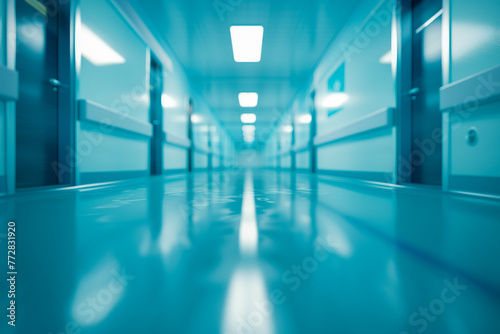 Abstract blur luxury hospital corridor. Blur clinic interior background with defocused effect. Healthcare and medical concept