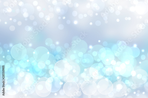 Abstract blurred festive delicate winter christmas or Happy New Year background with shiny blue and white bokeh lighted stars. Space for your design. Card concept.