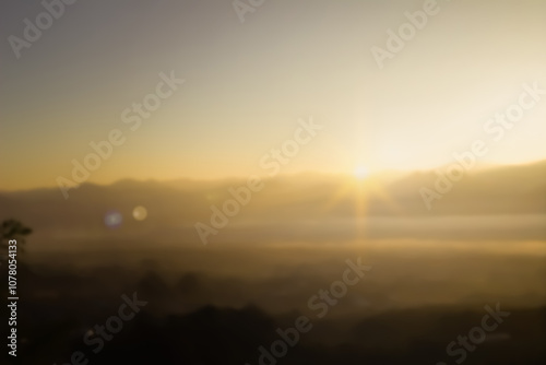 Abstract blurring warm colors and bright sunlight. Bokeh or merry christmas winter background, happy new year 2025. Green forest nature, sky sunny light patterns evening clouds blur in Navidad.