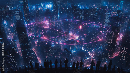 abstract, business, team, stand, peak, success, businessman, tall, innovative, modern, building, canvasses, potential, predict, future, company, growth, smart, digital, city, connection, network, reciprocity, city landscape, concept, wireless, social, media, connect, people, double, exposure, wave, background, artificial intelligence, thing, networking, night, silhouette, urban, skyline, building, architecture, illustration