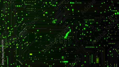 circuit board, electronic, technology, green, glowing, light, line, pattern, abstract, digital, computer, circuit, system, dark background, complex, design, graphic, texture, modern, futuristic, electrical, component, connection, intricate, network, abstract design, tech, neon, bright, illuminated