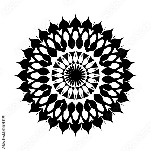 abstract, circle, design, repeating, element, black, white, geometric, symmetry, pattern, mandala, decorative, floral, ornament, illustration, art, graphic, shape, round, radial, background, texture, drawing, style, creative, contemporary, modern, minimalist, stylised, bold, simple, contrast, monochrome, floral pattern, symmetric, geometry