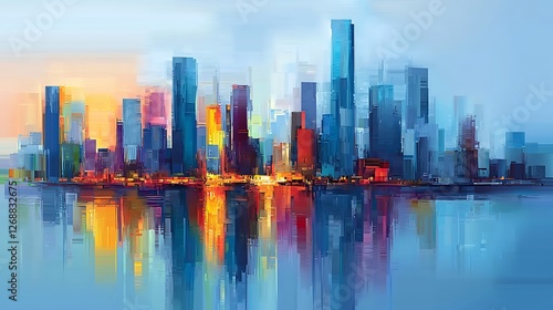 Abstract cityscape with urban twilight colors, perfect for real estate marketing or city guides