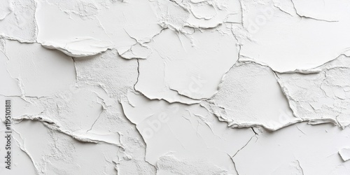 Abstract closeup of a bright white uneven stucco wall displaying chaotic plaster texture with varying depth and ample copy space for design use.