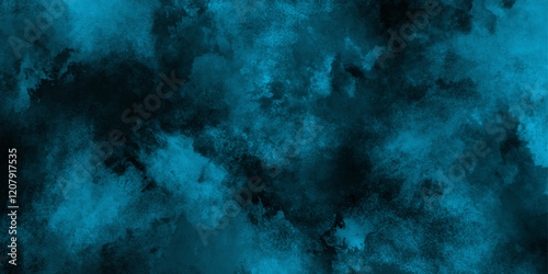abstract cloud and vapor texture background. Black and blue smoke aquarelle smudge illustration smooth grungy smokey light pastel colors ink glow. Teal color powder explosion .