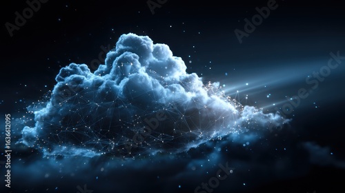 cloud, computing, network, technology, digital, cyberspace, datum, storage, connectivity, modern, graphic, illustration, design, abstract, blue, light, beam, dark, sky, night, isolated, vector, connection, point, line, graphic design, digital artwork, futuristic, networking