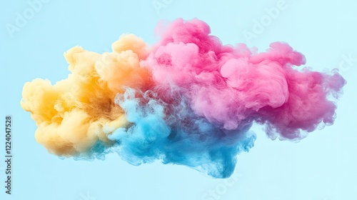 Abstract color cloud in shades of pink, blue, and yellow, creating a dreamy, surreal appearance.