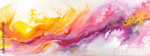 colourful, abstract, paint, flow, bright, colours, yellow, orange, pink, purple, white, canvas, captivating, energetic, contemporary, art, design, project, decor, generative, ai, splash, colours, watercolor, grunge, vector, ink, illustration, pattern, liquid, texture, water, dripped, splatter, artistic, image, element, decoration, painting, paper