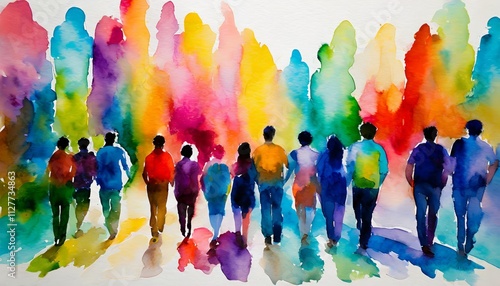 Abstract Colorful Art Watercolor Painting Depicting a Diverse Group of People United in Harmony, Celebrating Diversity and Inclusion Through Vibrant Colors and Artistic Expression