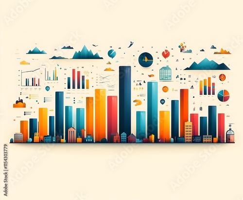Abstract Colorful Cityscape with Rising Arrow, symbolizing Business Growth and Success in the Urban Market