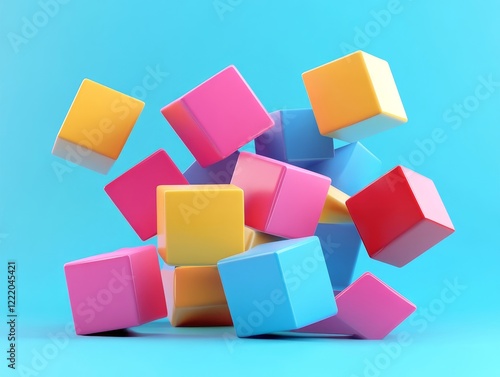 Abstract colorful cubes, geometric design, 3d render, Generative AI