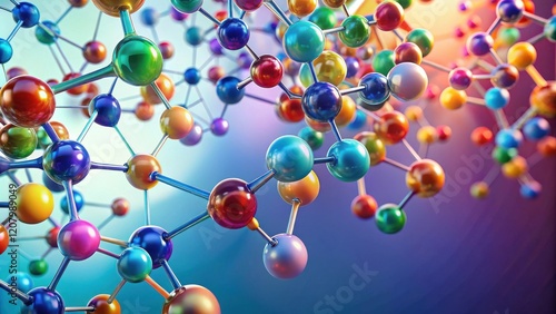 Abstract colorful molecular structure model illustration representing the complexity of chemical bonds and atomic interactions