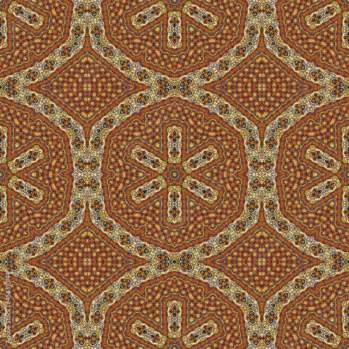 Abstract colorful seamless jacquard mosaic pattern. Design for fabric, wallpaper, paper, cover, weaving, packaging, tile, ceramics. Background for fashion textiles.