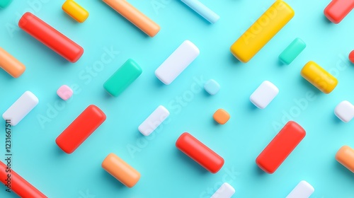 Abstract Colorful Shapes on Blue Background Creating Modern Artistic Pattern for Design Concepts