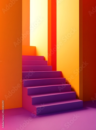 stair, colourful, abstract, minimalist, interior, design, architecture, geometric, modern, purple, orange, yellow, three-dimensional, render, wall, shape, gradient, light, shadow, room, style, art, pattern, background, minimal, creative, concept, graphic