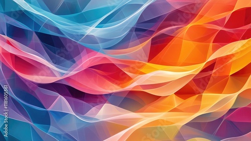 Abstract Colorful Waves in Blue Red Orange and Purple Tones