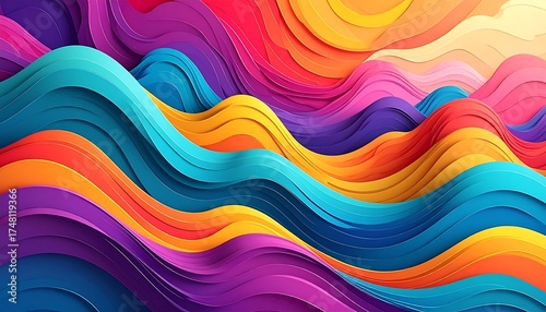 Abstract Colorful Wavy Background with Vibrant Hues and 3D Effect