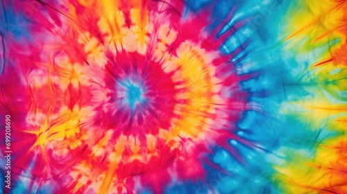 Abstract colourful tie dye textile texture background. Retro, hippie and boho style banner