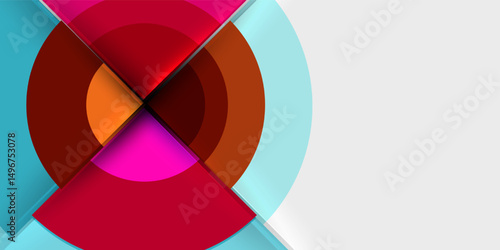 Abstract composition. Concentric circles, vibrant colors, dynamic shapes create modern design. Black background emphasizes bright elements.