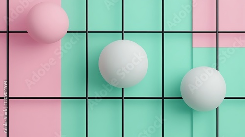 abstract, geometric, design, shape, colours, minimalism, background, grid, sphere, pink, green, black, texture, decoration, layout, artistic, modern, pattern, visual, creativity, contemporary, three-dimensional, arrangement, artwork, line, space, symmetry, aesthetic, soft, fun, playful, round, simple, unique, stylish, bright, vibrant, contrast, sharpened, balance