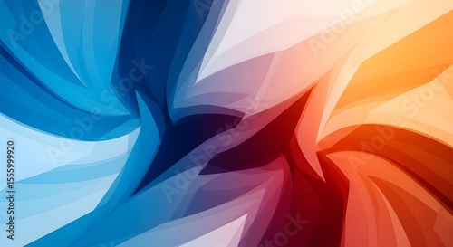 Abstract composition with overlapping translucent blue and orange curving shapes