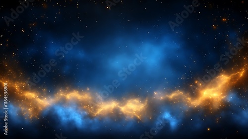 Abstract cosmic nebula with blue and gold hues