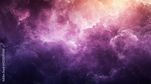 Abstract cosmic nebula with purple, pink, and orange clouds.