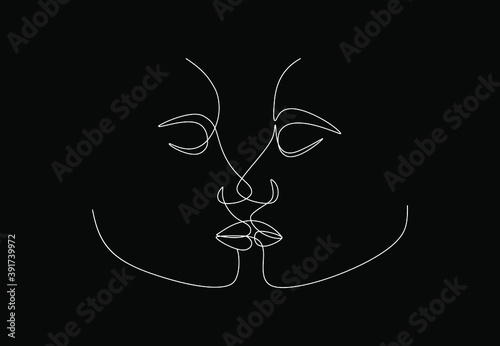 Abstract couple kiss one line. Linear drawing of woman man kissing, modern art for print, textile, t-shirt. Vector illustration