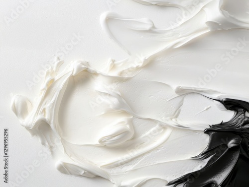 abstract texture, paint, white paint, art, background, cosmetic, beauty, skincare, make-up, design, elegant, stylish, creative, surface, wallpaper, pattern, marble, liquid, fluid, graphic, illustration, modern, artistic, smooth, brushstroke, high key, minimal, monochrome, contrast, yin and yang, black-and-white, food, frosting, dessert, icing, milk, yogurt, cream, dairy, culinary, baking, delicious, sweet