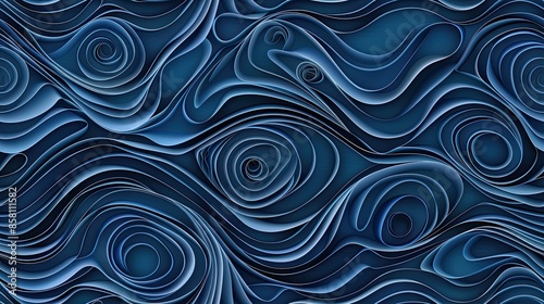 Abstract dark blue background image featuring overlapping concentric circles in a paper-like style SEAMLESS PATTERN