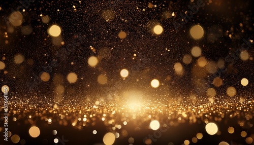 abstract dark brown and gold particle backdrop christmas golden light shed bokeh particles over a background of black gold foil appearance holiday idea