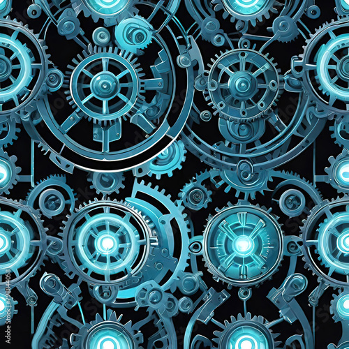 Abstract dark technology background, Colorful seamless pattern with gears and machine parts, vector illustration, wallpaper for design