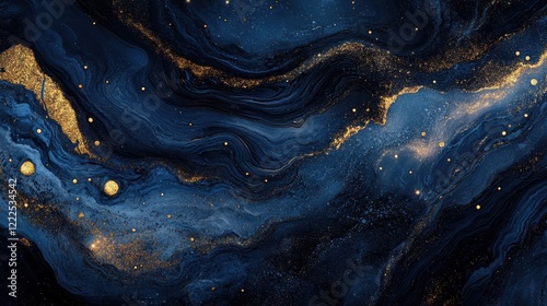 abstract, blue, gold, swirl, glistering, sparkle, dust, background, texture, fluid, ink, paint, pattern, marble, luxurious, elegant, cosmic, galaxy, space, nebula, night, dark, design, artwork, artistic, decorative, contemporary, modern, graphic, celestial, shimmering, aglow, trendy, opulent, rich, glamourous, festive, celebration, digital artwork, wallpaper