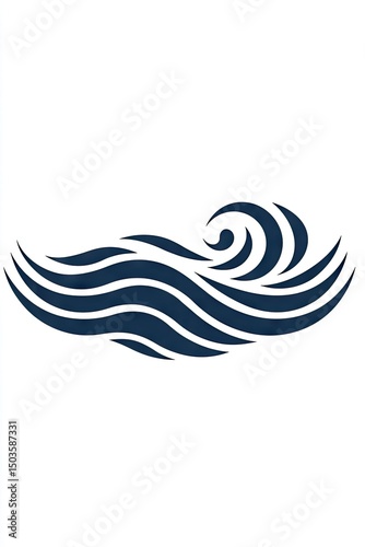 Abstract design of stylized ocean waves in dark blue.