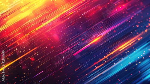 Abstract diagonal lines and bokeh lights in vibrant colors.
