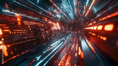 abstract, digital, corridor, glowing, light, datum, tunnel, futuristic, technology, neon, red, orange, blue, cyan, dark, black, speed, motion, energy, power, network, connection, line, pattern, texture, background, design, graphic, illustration, fi, space, travel, vibrant, intense, bright, illuminated, modern, style, art, visual