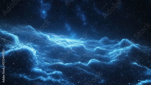 space, digital, landscape, glowing, particle, blue, futuristic, abstract, technology, nebula, cosmic, universe, galaxy, star, light, design, background, texture, pattern, datum, network, wave, mountain, glow, future, science, illustration, visualisation, three-dimensional, rendering, effect, colours, graphic, virtual, wave, cloud