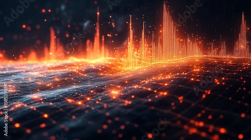 abstract, digital, landscape, glowing, red, line, particle, city landscape, motion, futuristic, technology, datum, network, connection, cyberspace, digital artwork, design, background, illustration, pattern, texture, graphic, three-dimensional, render, rendering, visual, effect, style, modern, creative, bright, dark, light, dynamic, energy, power, abstract art, graphic design, abstract background