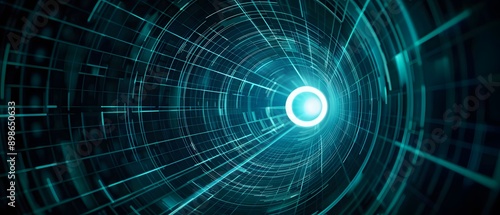 Abstract digital tunnel with glowing light.