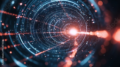 Abstract digital tunnel with glowing lights and intricate patterns.